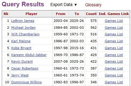 pg官网-杜兰特423次砍下30+高居历史第7 继续追赶贾巴尔 詹姆斯575次第一